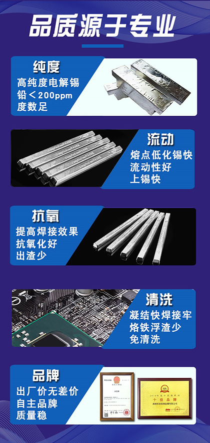 1. 电解纯锡,湿润性、流动性好,易上锡。