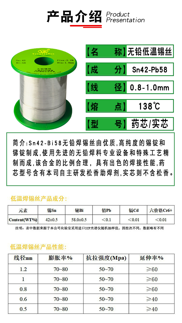 产品品牌:永佳润 产品成份:Sn42% Bi58%